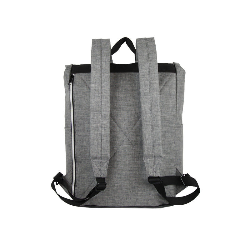 • Roll top closure with adjustable plastic snap fasteners on each side